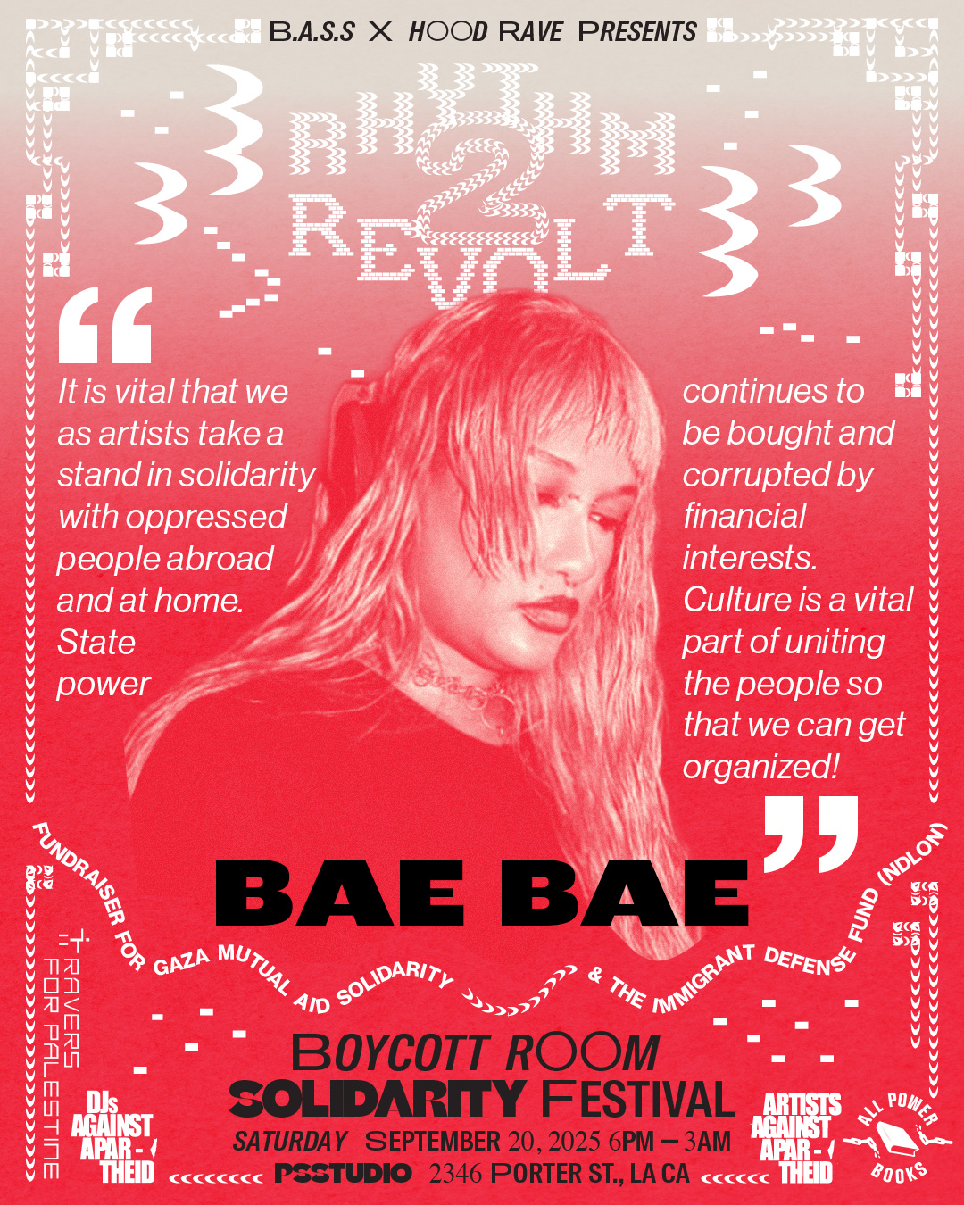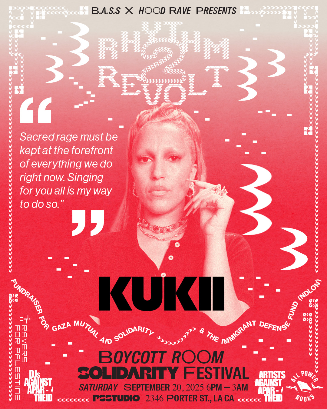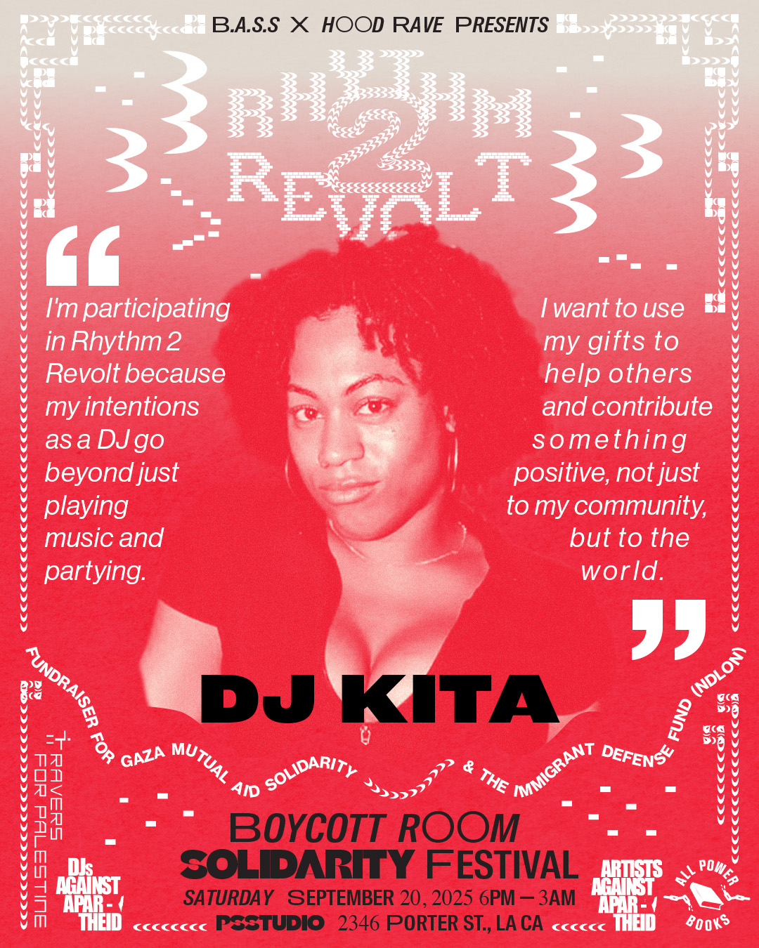 Visuals for a music fundraiser for the National Day Laborer's Network (NDLON) and Gaza Mutual Aid, produced by Hood Rave, a Black queer underground nightlife event creator.