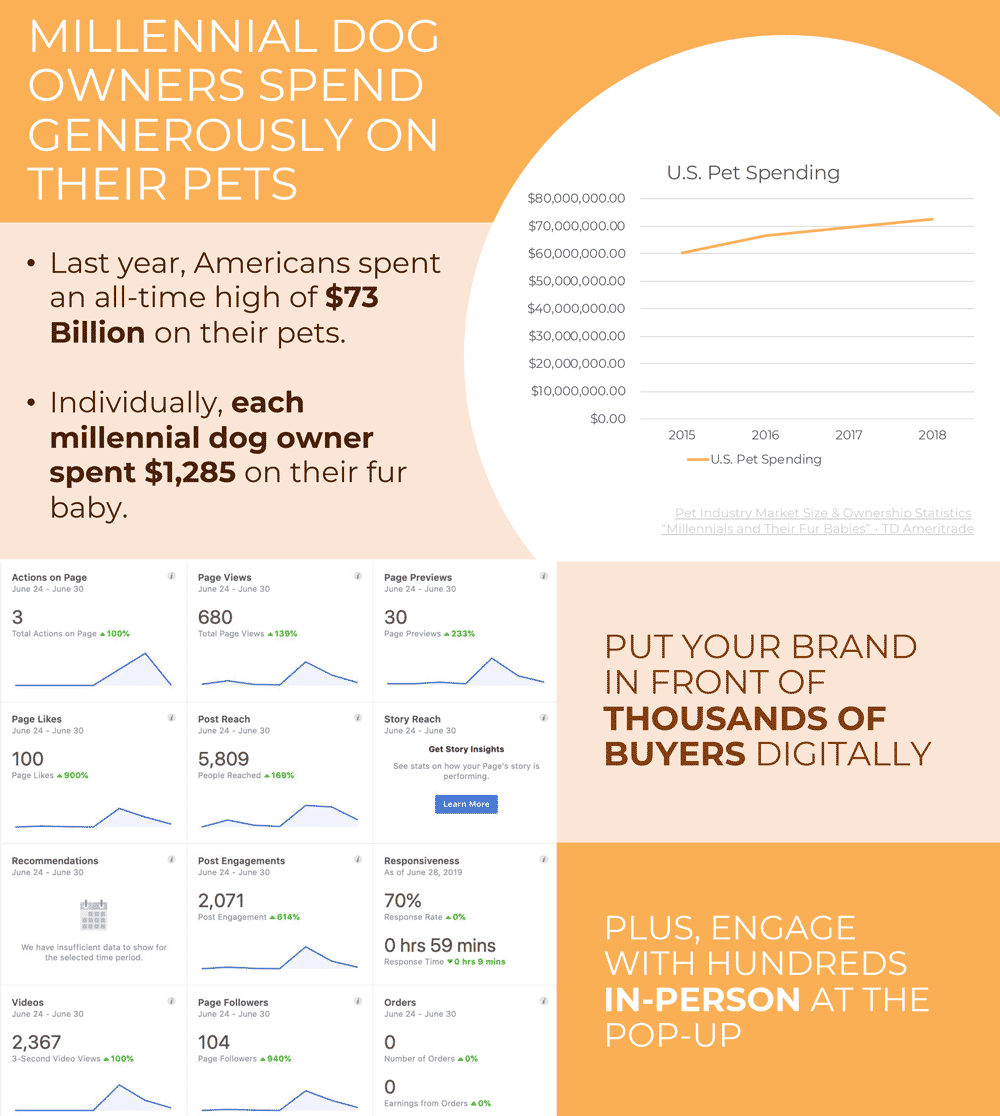 I created a pitch deck using data on pet owner spending and attendance of similar events to propose sponsorships to several brands. The subscription box BarkBox ended up being a sponsor.